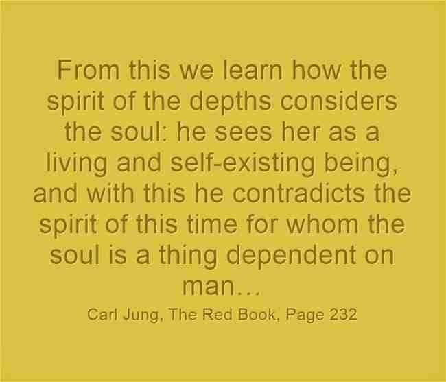 From this we learn how the spirit of the depths considers the soul he sees her as a living and self-existing being, and with this he contradicts the spirit of this time for whom the soul is a thing dependent on man… ~Carl Jung, The Red Book, Page 232.