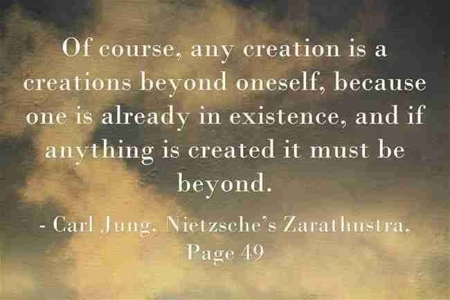 Of course, any creation is a creations beyond oneself, because one is already in existence, and if anything is created it must be beyond. ~Carl Jung, Nietzsche’s Zarathustra, Page 49.