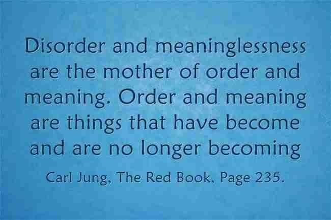 Disorder and meaninglessness are the mother of order and meaning. Order and meaning are things that have become and are no longer becoming. ~Carl Jung, The Red Book, Page 235.
