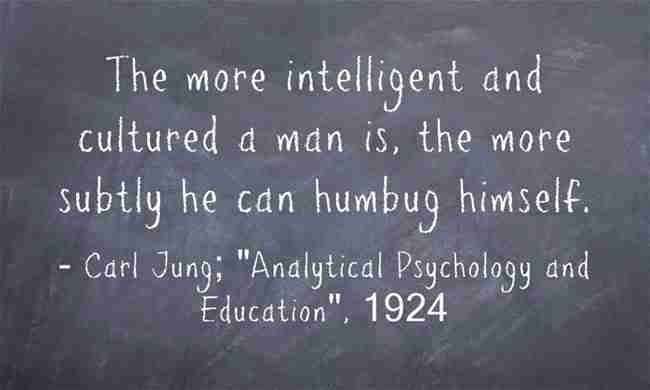 The more intelligent and cultured a man is, the more subtly he can humbug himself. ~Carl Jung, “Analytical Psychology and Education”, 1924