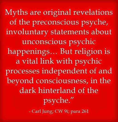 Myths are original revelations of the preconscious psyche, involuntary statements about unconscious psychic happenings… But religion is a vital link with psychic processes independent of and beyond consciousness, in the dark hinterland of the psyche. ~Carl Jung CW 9i, para. 261.
