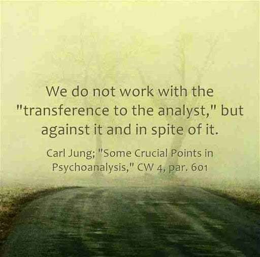 We do not work with the “transference to the analyst,” but against it and in spite of it. ~Carl Jung, CW 4, par. 601.