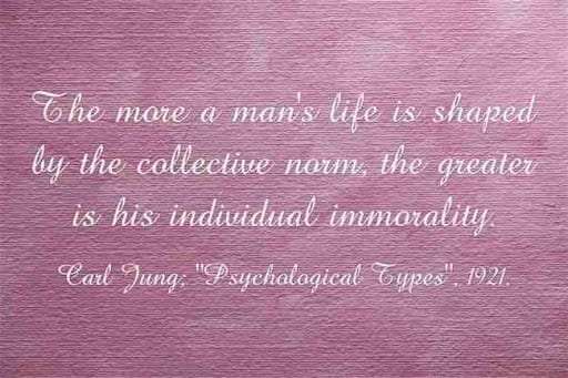 The more a man’s life is shaped by the collective norm, the greater is his individual immorality. ~Carl Jung, “Psychological Types,” 1921