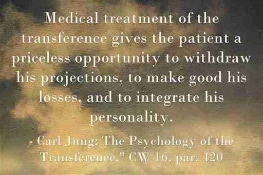 Medical treatment of the transference gives the patient a priceless opportunity to withdraw his projections, to make good his losses, and to integrate his personality. ~Carl Jung, CW 16, Para 420.