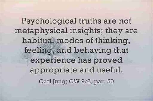 Psychological truths are not metaphysical insights; they are habitual modes of thinking, feeling, and behaving that experience has proved appropriate and useful. ~Carl Jung, CW 9ii, para 50.