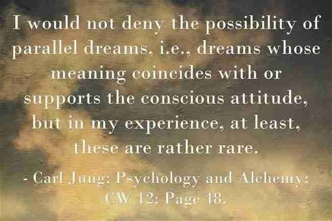 I would not deny the possibility of parallel dreams, i.e., dreams whose meaning coincides with or supports the conscious attitude, but in my experience, at least, these are rather rare. ~Carl Jung, CW 12; Page 48.