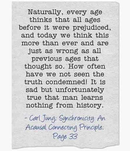 Naturally, every age thinks that all ages before it were prejudiced, and today we think this more than ever and are just as wrong as all previous ages that thought so. How often have we not seen the truth condemned! It is sad but unfortunately true that man learns nothing from history. ~Carl Jung, CW 8, Page 33.