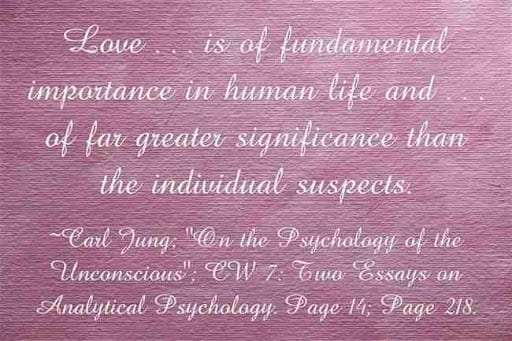 Love . . . is of fundamental importance in human life and . . . of far greater significance than the individual suspects. ~Carl Jung, CW 7, Page 218.
