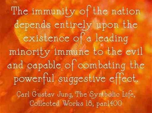The immunity of the nation depends entirely upon the existence of a leading minority immune to the evil and capable of combating the powerful suggestive effect. ~Carl Jung, CW 18, Para 1400