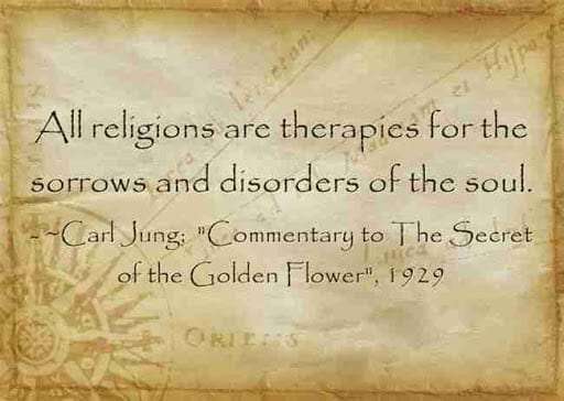 All religions are therapies for the sorrows and disorders of the soul. ~Carl Jung, Commentary to the Secret of the Golden Flower, 1929