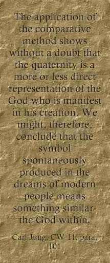 Because of its unconscious component the self is so far removed from the conscious mind that it can only be partially expressed by human figures; the other part of it has to be expressed by objective, abstract symbols. The human figures are father and son, mother and daughter, king and queen, god and goddess…. ~Carl Jung, CW 9i, para. 314-315.