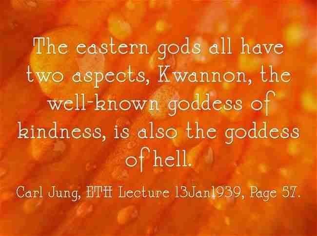 The eastern gods all have two aspects, Kwannon, the well-known goddess of kindness, is also the goddess of hell. ~Carl Jung, ETH Lecture 13Jan1939, Page 57