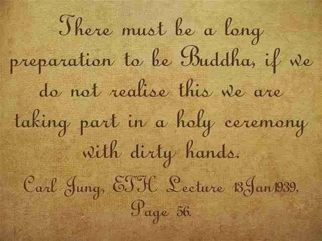 .There must be a long preparation to be Buddha, if we do not realise this we are taking part in a holy ceremony with dirty hands. ~Carl Jung, ETH Lecture 13Jan1939, Page 56.