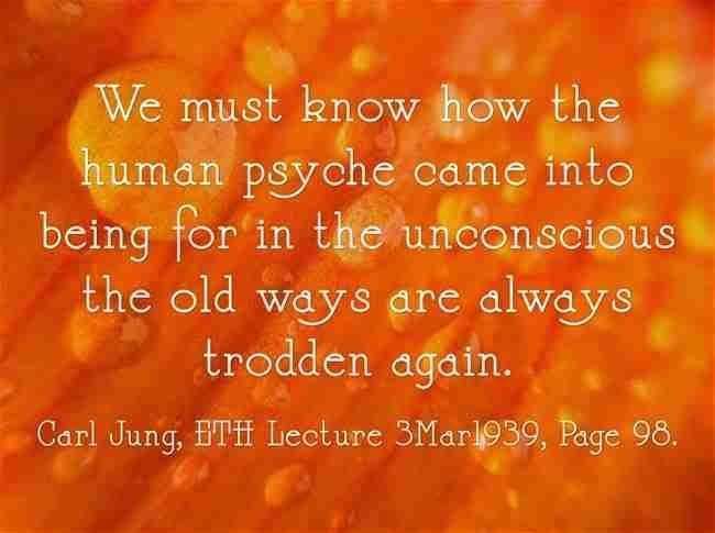 We must know how the human psyche came into being for in the unconscious the old ways are always trodden again. ~Carl Jung, ETH Lecture 3Mar1939, Page 98.