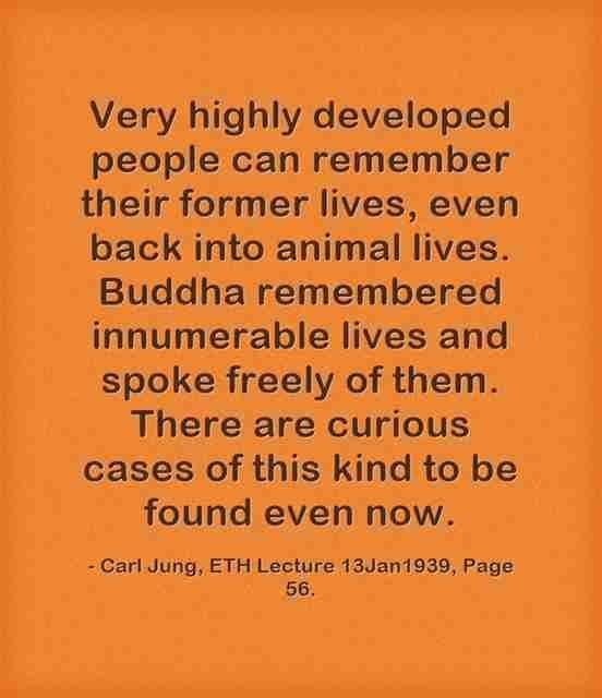 Very highly developed people can remember their former lives, even back into animal lives. Buddha remembered innumerable lives and spoke freely of them. There are curious cases of this kind to be found even now. ~Carl Jung, ETH Lecture 13Jan1939, Page 56.