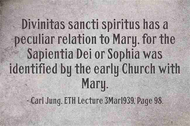 Divinitas sancti spiritus has a peculiar relation to Mary, for the Sapientia Dei or Sophia was identified by the early Church with Mary. ~Carl Jung, ETH Lecture 3Mar1939, Page 98.