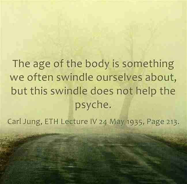 The age of the body is something we often swindle ourselves about, but this swindle does not help the psyche. ~Carl Jung, ETH Lecture IV 24 May 1935, Pages 213.