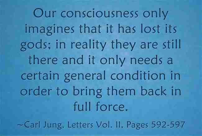 Our consciousness only imagines that it has lost its gods; in reality they are still there and it only needs a certain general condition in order to bring them back in full force. ~Carl Jung, Letters Vol. II, Pages 592-597
