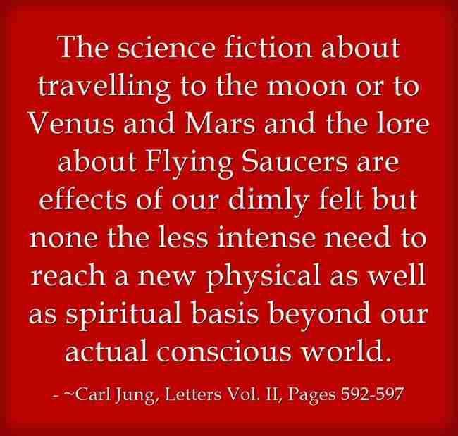 The science fiction about travelling to the moon or to Venus and Mars and the lore about Flying Saucers are effects of our dimly felt but none the less intense need to reach a new physical as well as spiritual basis beyond our actual conscious world. ~Carl Jung, Letters Vol. II, Pages 592-597