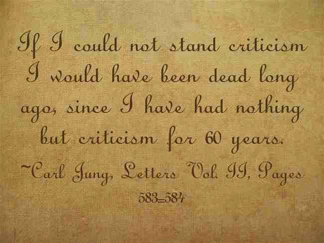 If I could not stand criticism I would have been dead long ago, since I have had nothing but criticism for 6o years. ~Carl Jung, Letters Vol. II, Pages 583-584