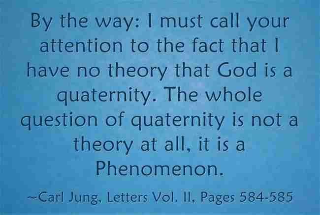 By the way: I must call your attention to the fact that I have no theory that God is a Quaternity. The whole question of quaternity is not a theory at all. It is a phenomenon. ~Carl Jung, Letters Vol. II, Pages 584-585.