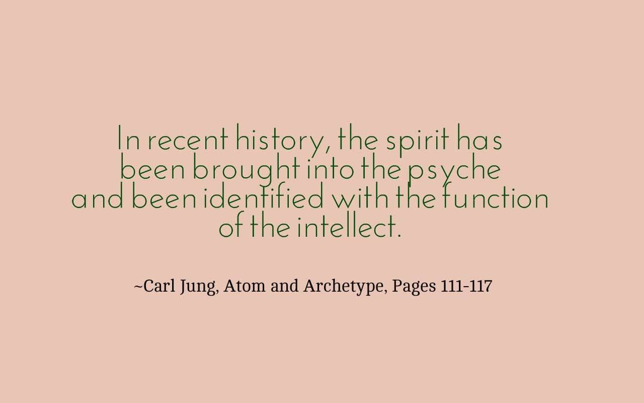 In recent history, the spirit has been brought into the psyche and been identified with the function of the intellect. ~Carl Jung, Atom and Archetype, Pages 111-117