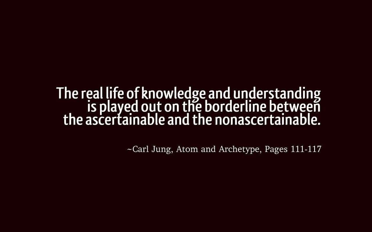 The real life of knowledge and understanding is played out on the borderline between the ascertainable and the nonascertainable. ~Carl Jung, Atom and Archetype, Pages 111-117
