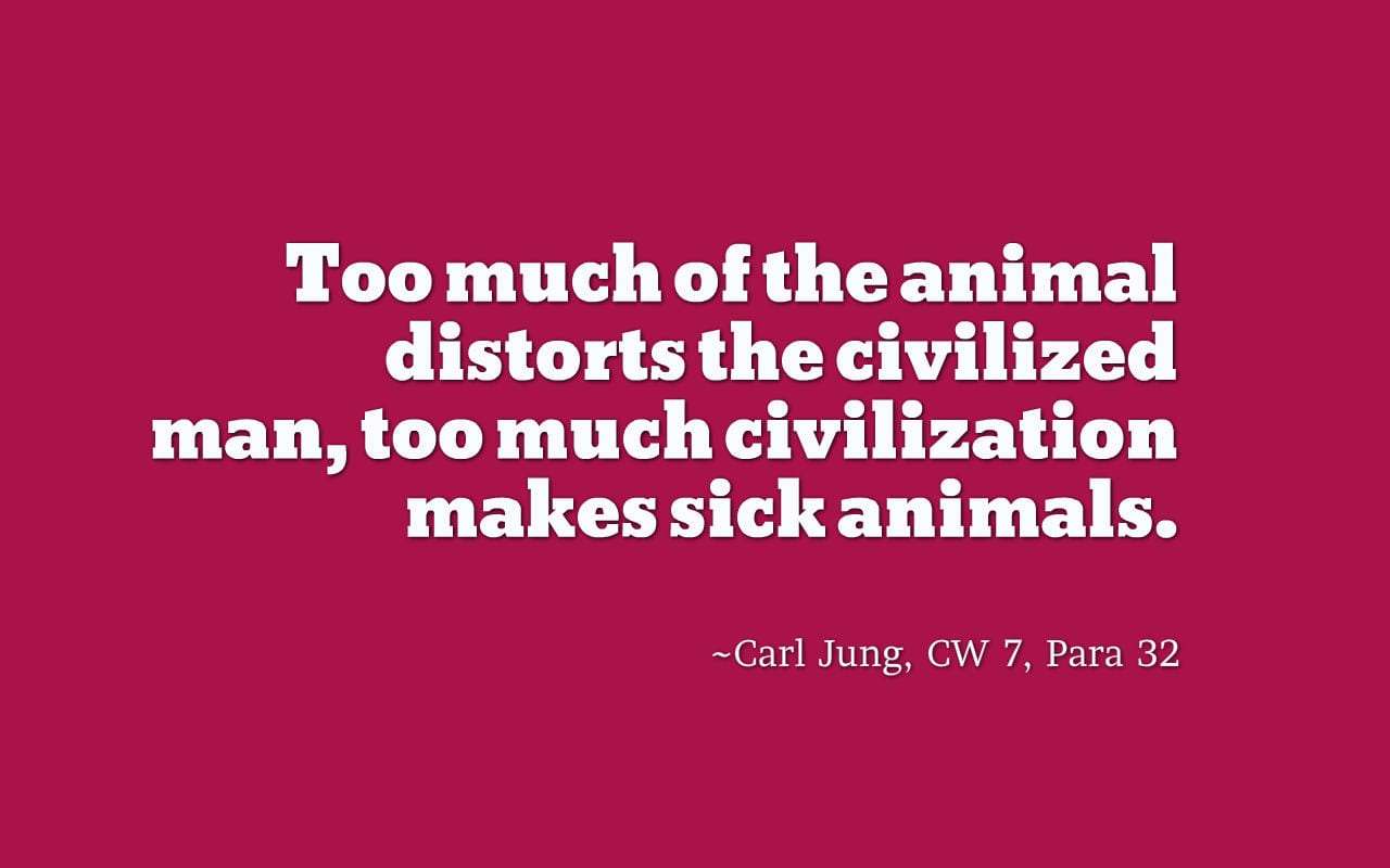 Too much of the animal distorts the civilized man, too much civilization makes sick animals. ~Carl Jung, CW 7, Para 32