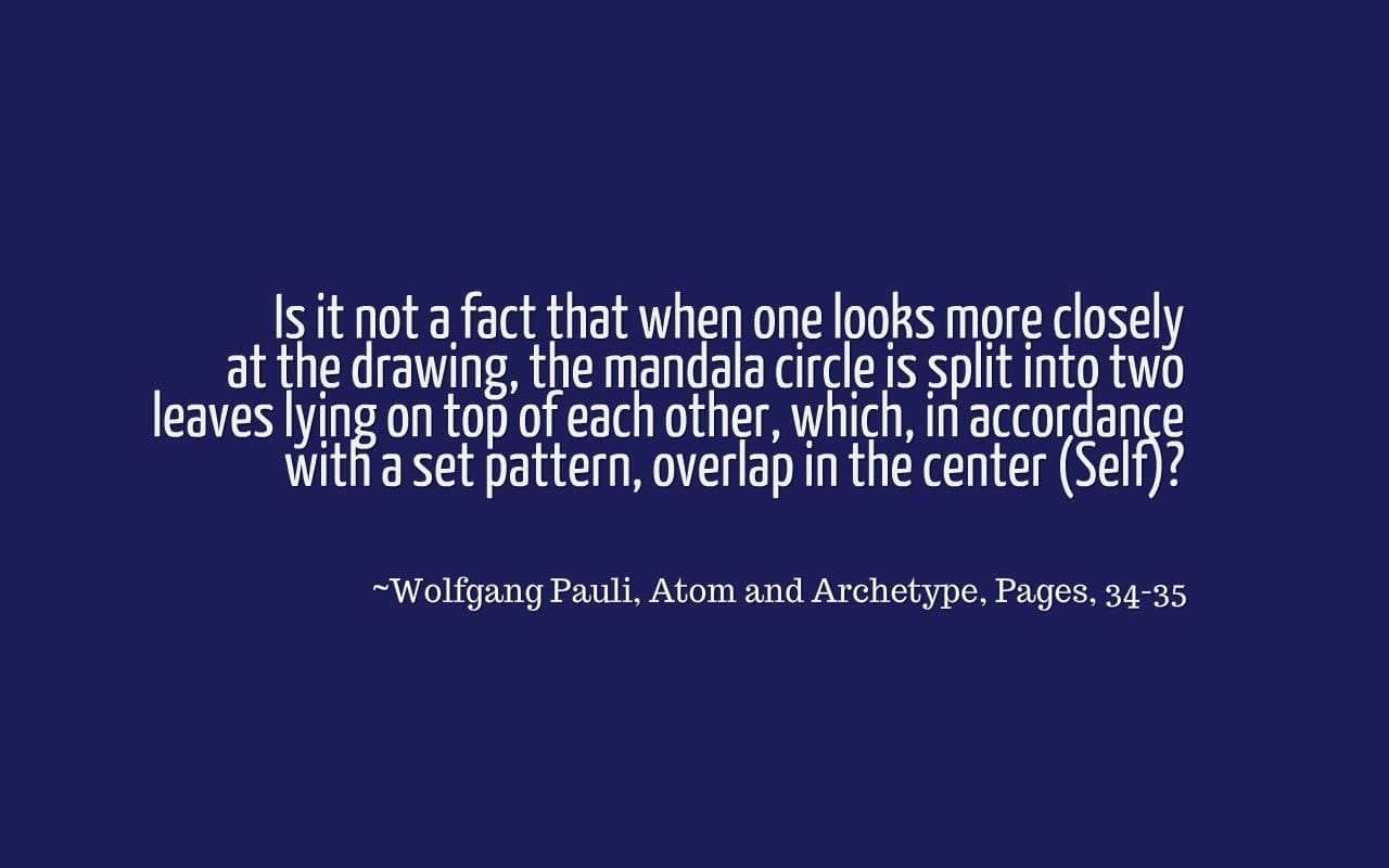 Is it not a fact that when one looks more closely at the drawing, the mandala circle is split into two leaves lying on top of each other, which, in accordance with a set pattern, overlap in the center (Self)? ~Wolfgang Pauli, Atom and Archetype, Pages, 34-35