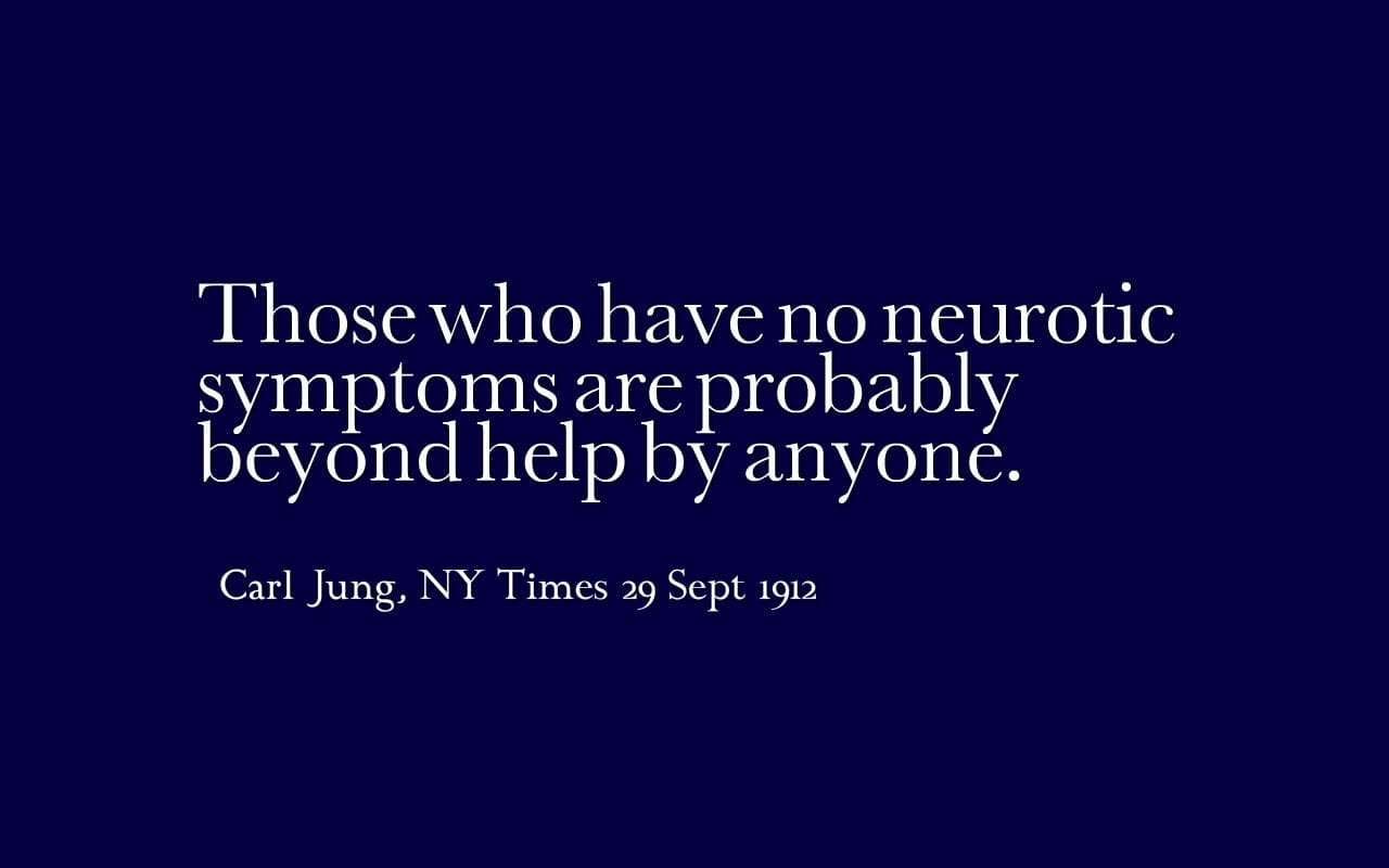 Those who have no neurotic symptoms are probably beyond help by anyone. ~Carl Jung, NY Times 29 Sept 1912