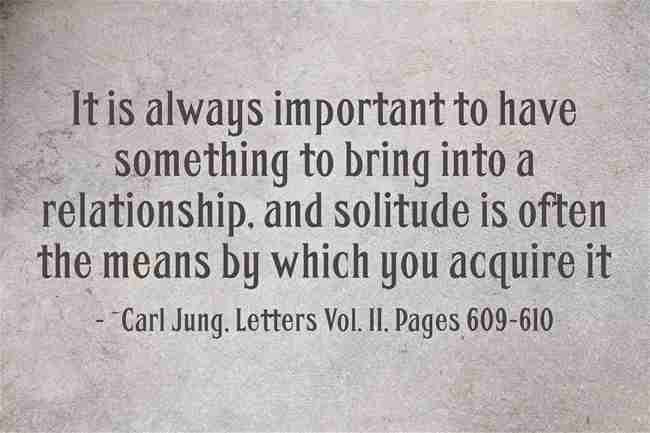 It is always important to have something to bring into a relationship, and solitude is often the means by which you acquire it. ~Carl Jung, Letters Vol. II, Pages 609-610