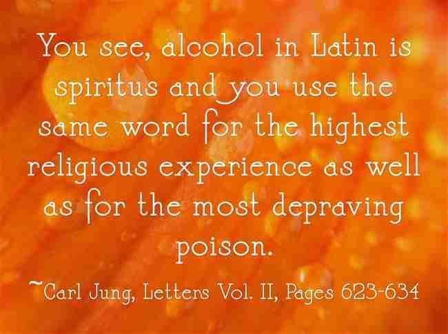 You see, alcohol in Latin is spiritus and you use the same word for the highest religious experience as well as for the most depraving poison. ~Carl Jung, Letters Vol. II, Pages 623-624