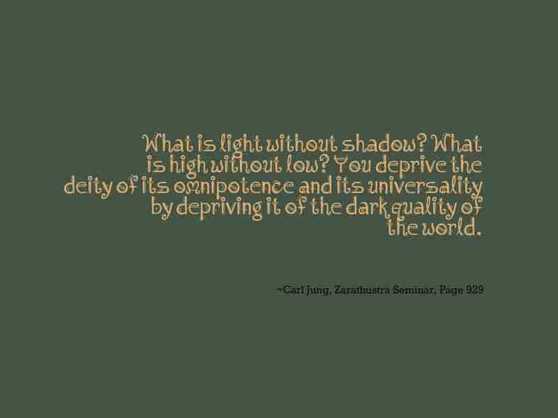 What is light without shadow? What is high without low? You deprive the deity of its omnipotence and its universality by depriving it of the dark quality of the world. ~Carl Jung, Zarathustra Seminar, Page 967