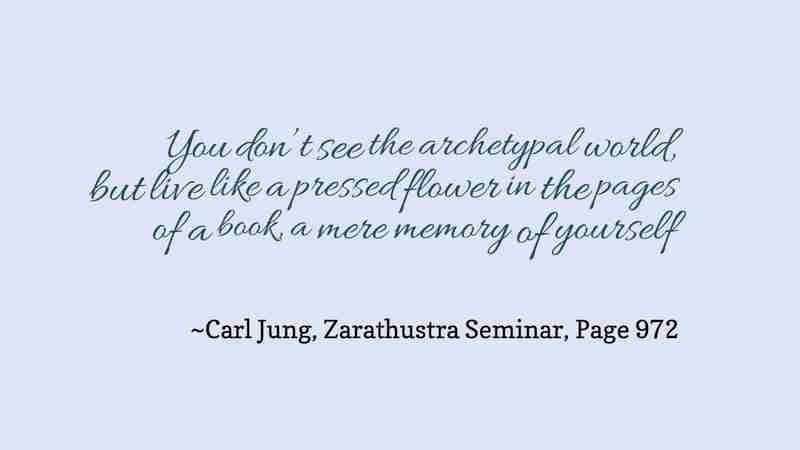 You don’t see the archetypal world, but live like a pressed flower in the pages of a book, a mere memory of yourself. ~Carl Jung, Zarathustra Seminar, Page 972.