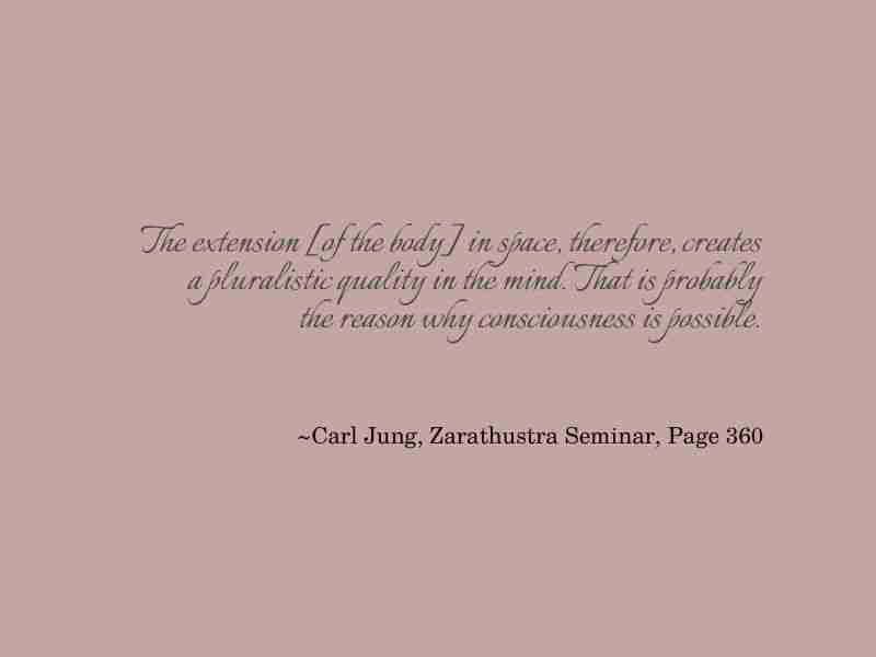 The extension [of the body] in space, therefore, creates a pluralistic quality in the mind. That is probably the reason why consciousness is possible. ~Carl Jung, Zarathustra Seminar, Page 360.